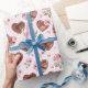 Papier Cadeau Mariage coeurs floraux roses roses brunes