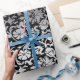 Papier Cadeau Mariage élégant en noir et damassé d'argent