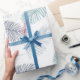 Ce joli papier cadeau de mariage est parfait pour un mariage sur le thème tropical ou papier cadeau pour un week-end d'enterrement de vie de jeune fille. Ce design présente un fond blanc doux avec des feuilles de palmier botaniques modernes en sarcelle, bleu foncé et couleurs corail doux.