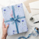 Beau papier d'emballage bleu fleur sauvage - parfait pour les mariages, les douches nuptiales et les anniversaires.