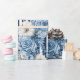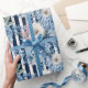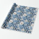 Papier Cadeau Mariage Réception Fleurs Bleu Marine Rayures