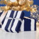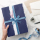 Papier Cadeau Marine d'aquarelles et rayures blanches