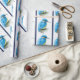 Beau papier d'emballage avec un motif répétitif de peinture de martin-pêcheur d'art dans les tons bleu et blanc. L'oiseau Kingfisher peint en aquarelle par Sarah Trett.
