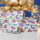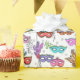 Ce papier d'emballage Mardi Gras présente un motif de masques colorés en rose, vert, bleu, rouge et violet sur un arrière - plan blanc. Conçu par l'artiste mondialement connu Tim Coffey.