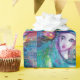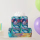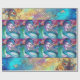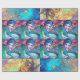 Coloré, capricieux, unique, peinture artistique aquarelle en bleu aqua clair, vert, turquoise, rose, fuchsia, blanc, brillant couleurs irisées, feuille dorée et argent, inspiré du Carnaval de Venise.2009.