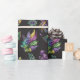 Papier Noir Enveloppé De Masque Mardi Gras Vert Coloré Et Plumes Violettes