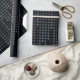 Papier d'enveloppement à motif matriciel Pois moderne. Couleurs noires, bleu doux, gris.