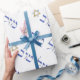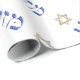 Faites une déclaration élégante avec ce joli papier d'emballage en texte hébreu bleu sur un arrière - plan blanc. Célébrez les petits triomphes de la vie ! Parfait pour b'nai mitzvot, mariages, ruffs et aliyot.
