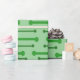 Ce papier d’emballage a une conception moderne du milieu du siècle, avec des lignes avec des cercles au bout dans les tons verts pour la Saint Patrick’s Day.