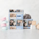 papier d'emballage fête des pères avec vos photos personnalisées et le texte "Meilleur papa jamais" en blanc et bleu. Arrière - plan de couleur bleu clair ou personnalisé.