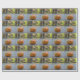 Festive Thanksgiving Fall Automne rouleau d'emballage d'un petit citrouille orange avec une belle tige haute et décoré d'une Turquie festive au centre, feuilles verts et marrons, et des applications citrouilles autocollants assis sur un pont en bois avec des rails noirs et des arbres brouillés dans l'arrière - plan. Avec l'adage, Donnez Merci. Beau papier d'emballage pour un anniversaire spécial, tout cadeau d'automne ou d'action de grâces pour la famille et les amis. Photographie originale de TamiraZDesigns. Visitez ma Boutique pour voir d'autres articles uniques www.zazzle.com/tamirazdesigns