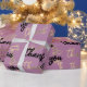 Papier Cadeau Merci rose violet or Calibrage Script