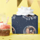 Motif bleu & or étoile arrière - plan avec votre photo préférée ajouté & Joyeux & sentiment lumineux sur ce beau papier d'emballage de vacances. Parfait pour vous ou pour offrir un cadeau. Un beau papier pour ce cadeau spécial pour cette personne spéciale dans votre liste.