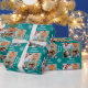 Papier Cadeau Merry Christmas 4 Photo Collage Family Name Teal