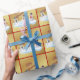 Papier Cadeau Merry Christmas and snowmen on faux gold