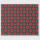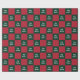 Merry Christmas is in a white script. This checkerboard wrapping paper has a classic Christmas color palette. The wrapping paper has a traditional red and green color scheme.
