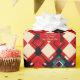Ce papier d'emballage de Noël présente un design géométrique audacieux et moderne avec un mélange de formes rouges, crème, noires et turquoises. Le motif est créé par des carrés et des diamants qui se chevauchent dans des teintes variées, formant un look saisissant et complexe qui ajoute une touche contemporaine à l'emballage de vacances traditionnel. L'ajout de texte personnalisé, comme "Joyeux Noël à [Nom] de [Expéditeur]", est élégamment imprimé dans une police élégante et cursive sur le papier. Cette option de personnalisation permet une touche chaleureuse, rendant chaque cadeau distinct et bien préparé. Parfait pour ceux qui apprécient un style artistique unique dans leur décoration de vacances. Le texte ou le message qui se trouve sur le papier d'emballage peut être remplacé et personnalisé. Cet aspect rend le papier d'emballage et votre message personnel adapté à de nombreuses occasions, y compris Noël.