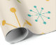 Ajoutez des vibes vintages à votre emballage cadeau avec ce papier d'emballage élégant avec étoiles atomiques du milieu du siècle en orange, vert et turquoise sur arrière - plan beige clair.
