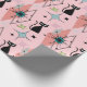 Papier Cadeau Mid Century Moderne Étoiles et Chats Motif rose