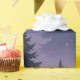 Featuring soft silhouettes of pine trees fading into a twilight sky of violet and midnight blue, sprinkled with glowing golden stars — this design captures the peaceful magic of winter nights.