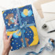 Motif bébé mignon et coloré avec un adorable dessin animé d'ours en peluche avec un ruban bleu arc assis sur une lune endormie tenant des ballons dans les étoiles jaunes et bleues et colorées, ballons colorés, étoiles, tourterelles et une étiquette de nom, avec un arrière - plan bleu foncé. L'art motif adorable pour bébé. Facile à personnaliser en changeant le nom.