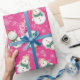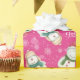 Deux mignons bonhomme de neige sont présentés sur ce papier d'emballage de Noël fantaisiste. Un adorable bonhomme de neige a sur son chapeau de Père Noël tandis que l'autre est doué dans son casquette de bois. Des flocons blancs et de la neige complètent le motif de vacances.