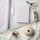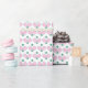 Ce papier d'emballage d'anniversaire comporte un motif de petites pagaies à pickleball. Les couleurs sont roses et vertes.