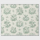 A charming mint green toile pattern wrapping paper featuring graceful birds perched among delicate flowers and ornate scrollwork. This seamless design blends classic French country elegance with natural beauty, rendered in soft green tones on a warm cream background. The intricate floral clusters, leaves, and decorative motifs evoke a sense of vintage refinement and pastoral serenity. Its timeless aesthetic makes it perfect for adding a touch of sophistication and calm to any setting.