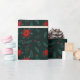 Papier Cadeau Modèle de couronne de Noël florale verte rouge
