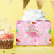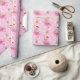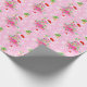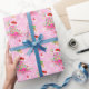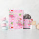 Flamands roses de Noël aux lampes à cordes et chapeau de Père Noël sur un arrière - plan rose aux flocons de neige et aux palmiers à la décoration festive. Montré ici sur papier d'emballage cadeau personnalisable. Vous pouvez facilement redimensionner le motif à votre préférence et sélectionner votre couleur arrière - plan préférée. C'est un mignon motif pour fêter Noël à l'ambiance tropicale !