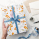 Papier Cadeau Modèle floral orange avec branches feuillues