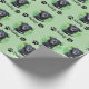 Papier Cadeau Moderne 1 Animal Empreinte de patte nom photo vert