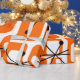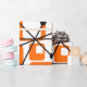 Papier d'emballage moderne du milieu du siècle recouvert de cercles oranges et de starbursts noirs. Mieux pour les gros paquets.