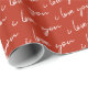 Papier d'emballage cadeau moderne avec un arrière - plan rouge romantique qui peut être changé à n'importe quelle couleur, avec un élégant motif "je t'aime" en blanc.