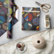 Ce papier d'emballage a un design moderne du milieu du siècle de moitiés ovales, certains solides et certains rayés dans les couleurs masculines, sur un champ de blanc.