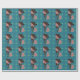 Illustration originale de style dessin animé rétro de mignon chien heureux portant une guirlande de roses avec arrière - plan à motifs géométriques. Papier d'emballage parfait pour chien et amoureux des animaux pour toute occasion.