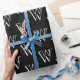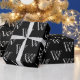 Monogrammé noir et blanc personnalisé initial ou numéro année motif mignon moderne papier enveloppement personnalisable texte, lettre, nombre, initial.