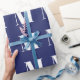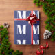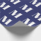 Papier Cadeau Monographie initiale marine moderne bleu & blanc p