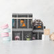 Qu'il s'agisse d'enrouler un cadeau effrayant ou d'avoir un ventilateur de zombies sur votre liste d'achat, ce papier d'emballage effrayant est un choix parfait. Il présente des portraits cauchemardesques de zombies en bleu, orange, jaune, rose, beige et vert dans des cadres noirs dressés contre un arrière - plan gris.