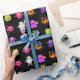Papier Cadeau Monstres d'Halloween colorés sur noir