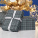 This highly sophisticated and moody wrapping paper features a classic tartan plaid pattern in a striking, dark palette. The design is dominated by deep charcoal and graphite grey tones, accented by subtle, yet beautiful, fine lines of muted aqua or light teal. This upscale, gender-neutral design is the perfect choice for an elegant winter or holiday gift, making it especially popular as men's gift wrap. Choose this dark, modern plaid for a refined and memorable presentation.