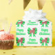 Morkie chien silhouette dedans avec le papier de Noël rouge abstrait motif et arc vert sur un arrière - plan blanc. Remplacez le Joyeux Noël par tout ce que vous voulez. Papier XMas pour chien parfait pour les cadeaux d'animaux de compagnie.
