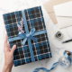 Papier Cadeau Motif à carreaux de Noël noir bleu rétro Fête