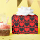Un papier d'emballage construit avec un motif à damiers rouge et noir avec des coeurs. Customisez la couleur noire de l'arrière - plan parmi plusieurs options.