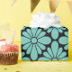 Ce motif moderne et amusant rappelle les motifs de fleurs en concho d'argent souvent vus sur les ceintures et les bijoux dans le sud-ouest américain. Motif présente des fleurs en losange aqua sur arrière - plan noir