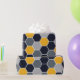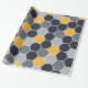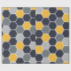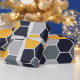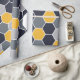 Un motif élégant d'hexagone dans des tons bleus, gris et jaunes.