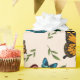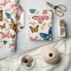 Papier d'emballage motif à papillon mignon et blanc avec feuilles verts. La couleur arrière - plan est modifiable. Parfait pour un emballage cadeau pour l'anniversaire d'une fille et d'autres célébrations.