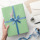 Motif pois vert sur papier d'emballage de Noël brillant.