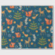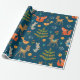 Un beau motif à thème pépinière de bois avec cerfs, renards, lapins, oiseaux et autres éléments de la nature sur un arrière - plan bleu foncé.