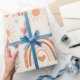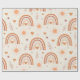 Il s'agit d'un motif arc-en-ciel boho mignon en terre cuite, orange, pêche et brun avec le soleil, les coeurs et les étoiles. C'est un papier d'emballage cadeau magnifique pour les fêtes de baby shower
